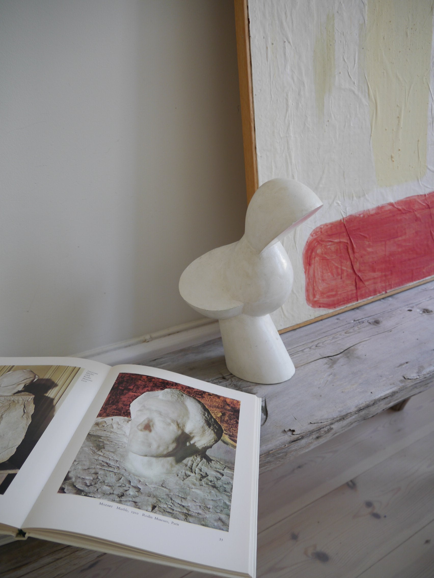 Reminiscent of the amoebalike shaped sculptures of the Swiss Surealist artist, Jean Arp.