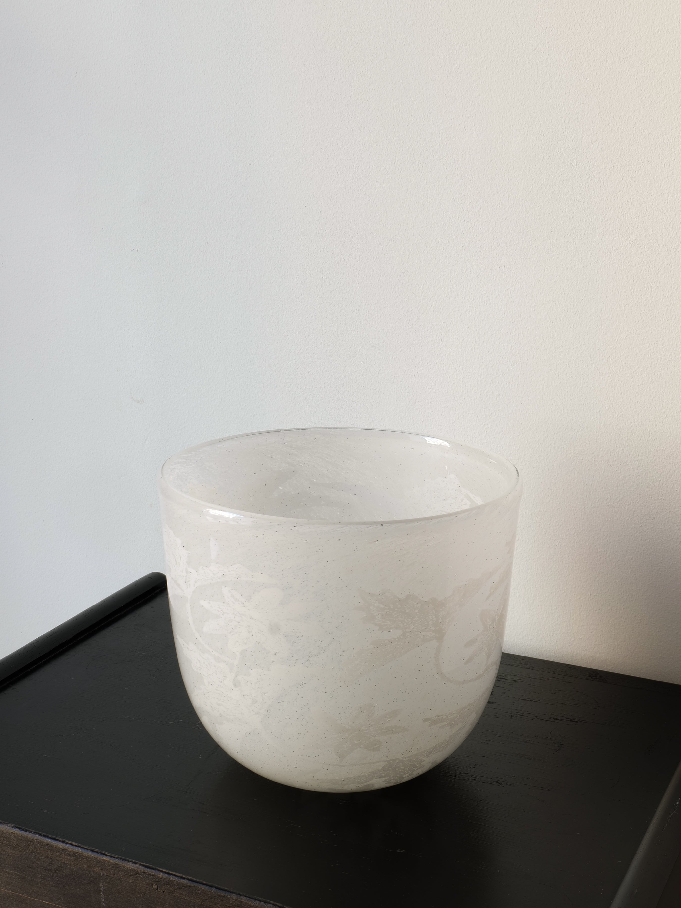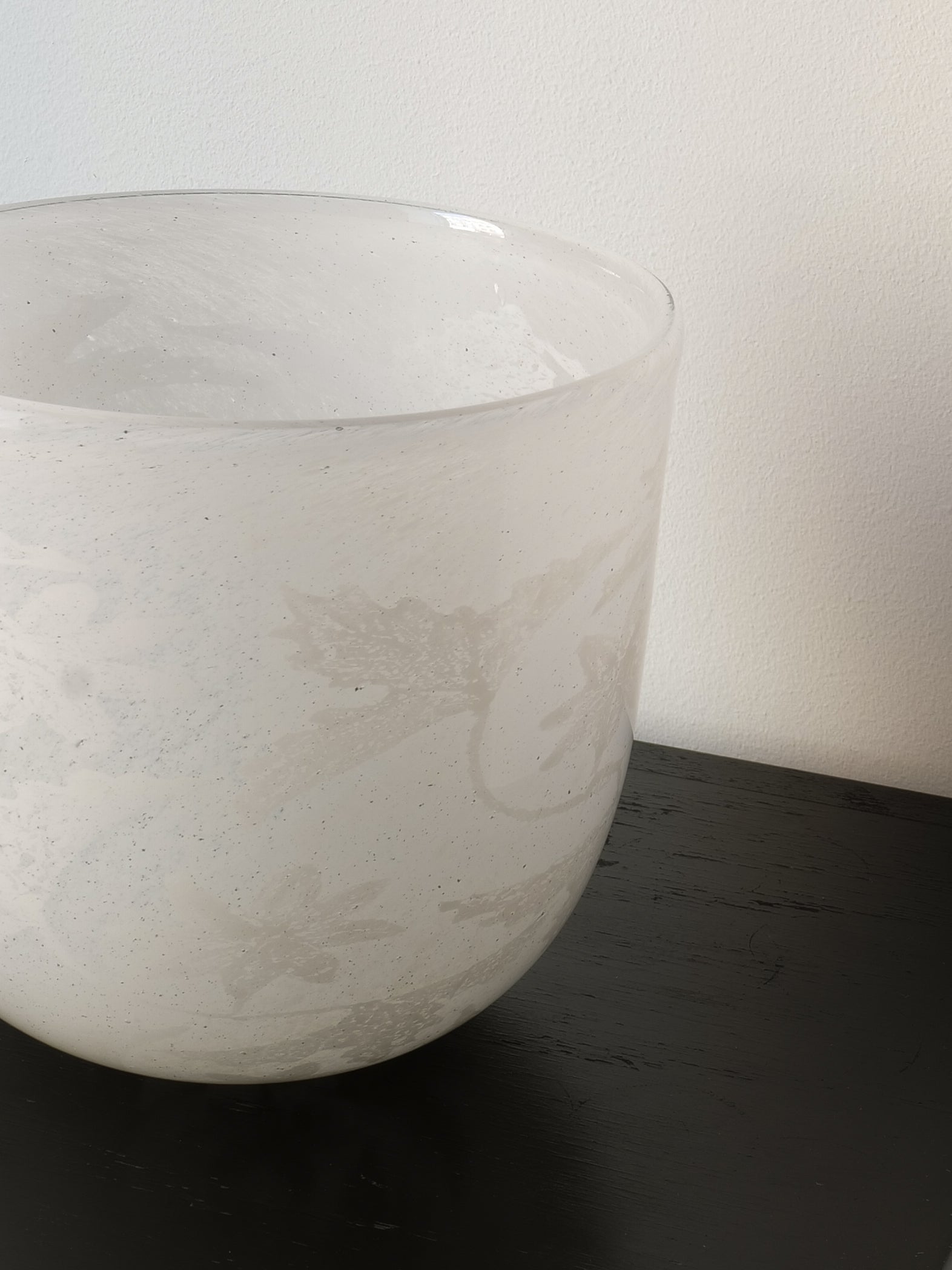 A wonderful glass vase by the eponymous Swedish glass designer, Ingegerd Råman. Hand blown with an inlay floral design.