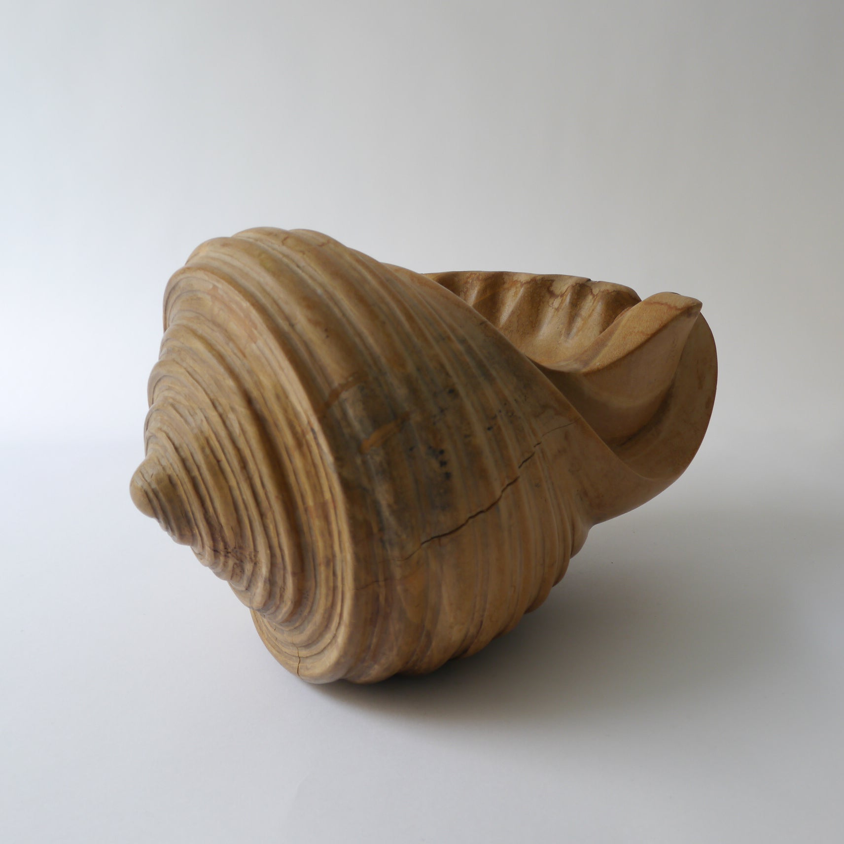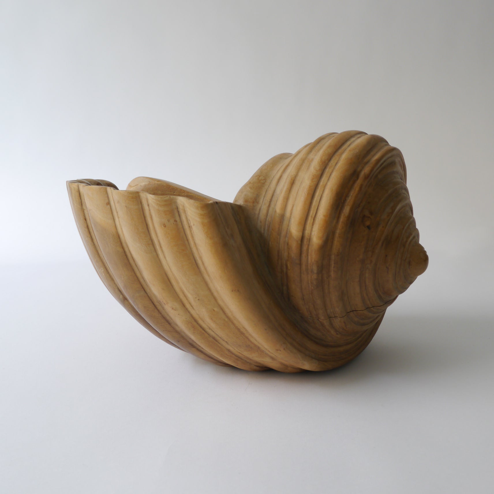 Hand carved wooden shell sculpture. A beautiful piece of hand craft.